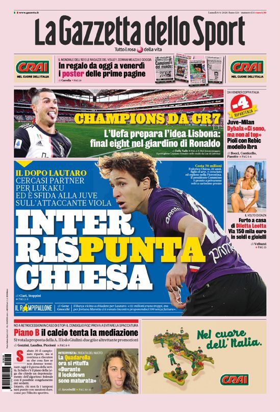 È già partito in casa nerazzurra il toto-nomi per sostituire Lautaro, dato partente sicuro direzione Barcellona. In prima pagina nel taglio centrale della Gazzetta dello Sport si legge “Inter: rispunta Chiesa”. L’Inter è pronta a reinvestire immediatamente sul mercato i soldi della cessione di Lautaro e Federico Chiesa è uno degli indiziati. I nerazzurri tenterebbero così di scalzare la Juventus. Un duello di mercato destinato a infiammarsi.
