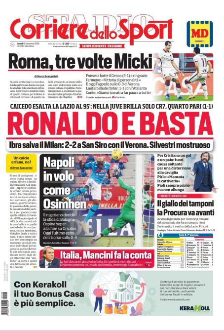 RASSEGNA STAMPA, Le prime pagine dei quotidiani sportivi di oggi Redazione 9 Novembre 2020 Ecco le prime pagine dei quotidiani sportivi di oggi: