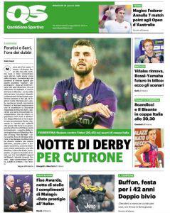 “Notte di derby per Cutrone”, apre così la Nazione, oggi in edicola sulla sfida di questa a San Siro tra l’Inter di Antonio Conte e la Fiorentina di Beppe Iachini. Quarti di finale di Coppa Italia, la vincente sfiderà il Napoli, già qualificato contro la Lazio una settimana fa. La viola si affida a Patrick Cutrone che contro i nerazzurri vive il suo derby personale.. per lui che ha vestito la maglia del Milan in passato.