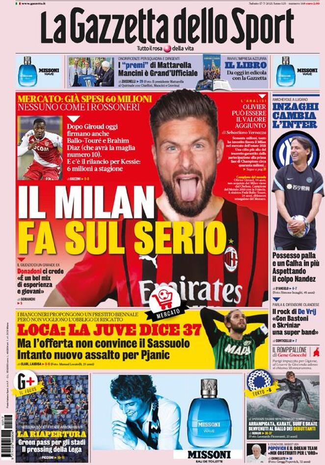 RASSEGNA STAMPA, Le prime pagine dei quotidiani Redazione 17 Luglio 2021 Ecco le prime pagine dei principali quotidiani sportivi in edicola questa mattina: