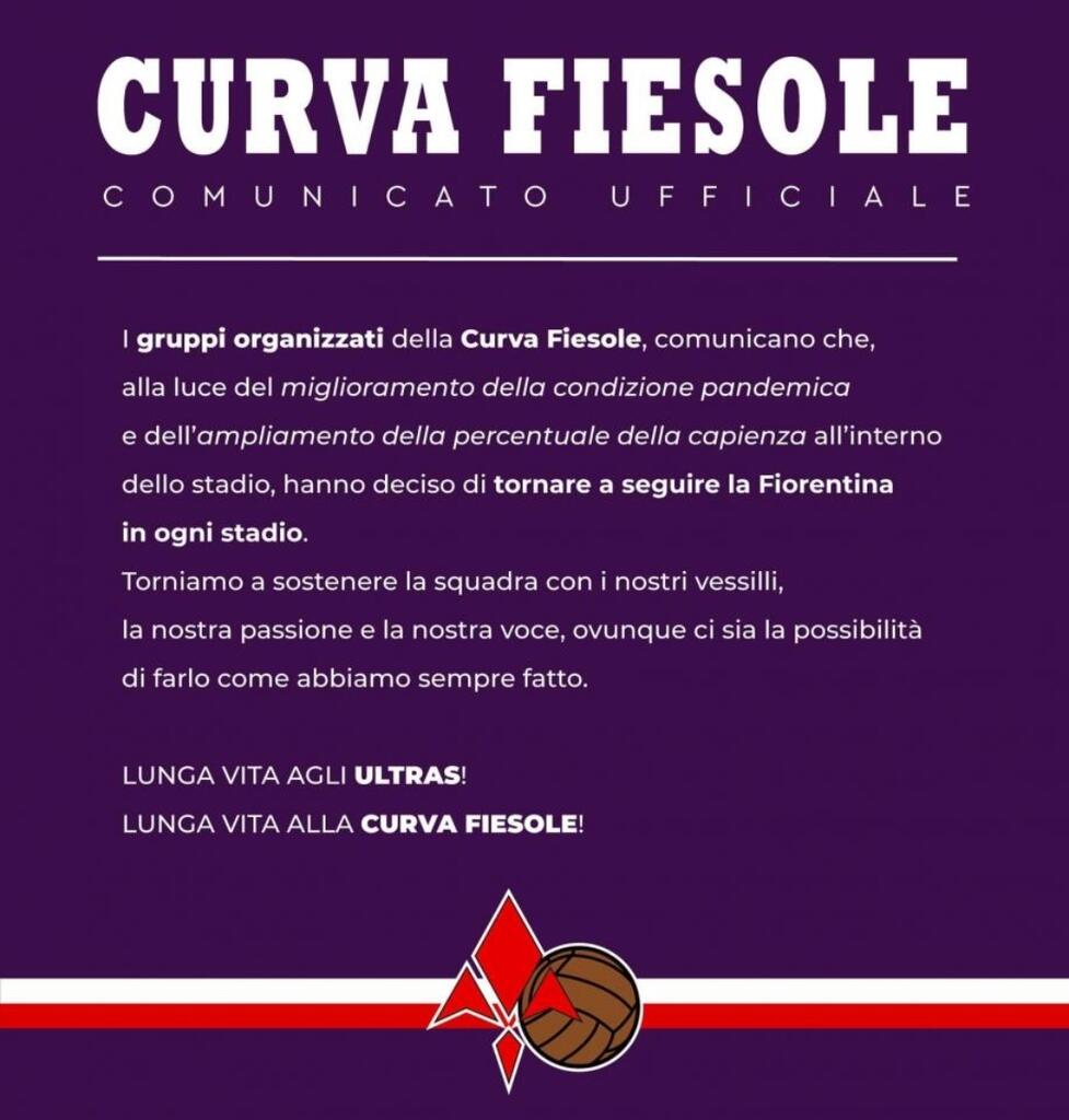 Ecco l’ultimo comunicato ufficiale divulgato dalla Curva Fiesole: