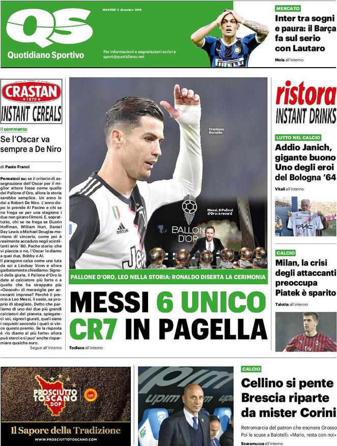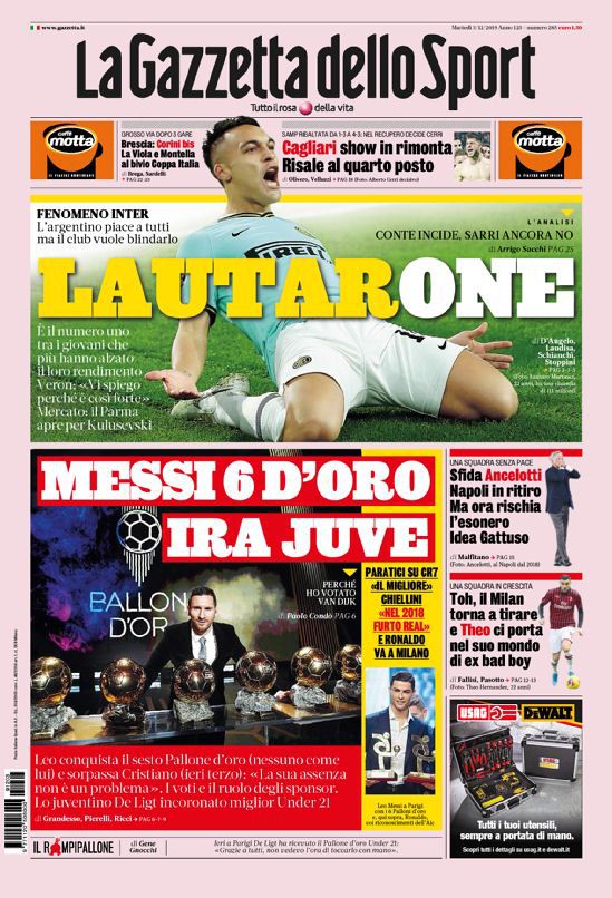 RASSEGNA STAMPA, Le prime pagine dei quotidiani sportivi di oggi Redazione 3 Dicembre 2019 Di seguito le prime pagine dei quotidiani sportivi di oggi martedì 3 dicembre.