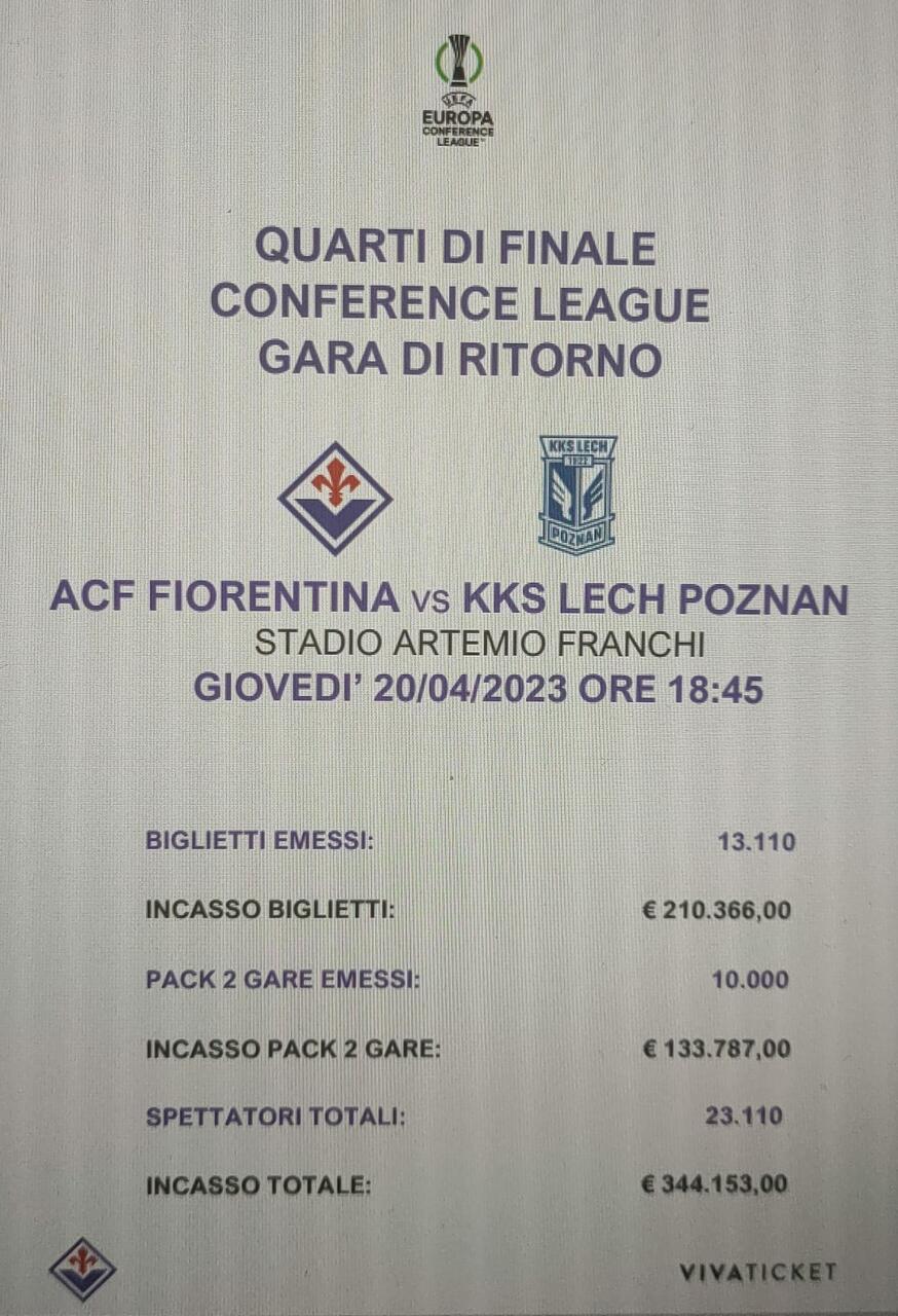 Ecco i dati sulle presenze dei tifosi per il ritorno dei quarti di finale di Conference League contro il Lech:
