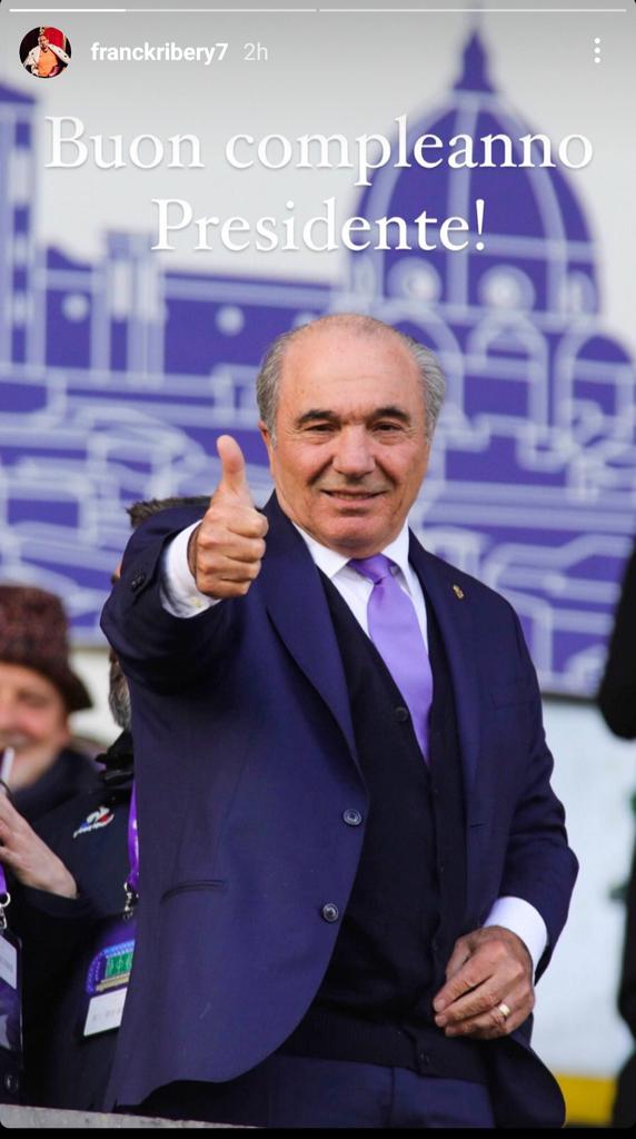 FOTO-SOCIAL, Gli auguri di Ribéry al presidente Commisso Redazione 25 Novembre 2020 Con una stories pubblicata sul proprio profilo Instagram, il calciatore viola Franck Ribéry ha condiviso gli auguri fatti al presidente Commisso. In occasione del compleanno del numero uno viola, ecco qui di seguito il post riportato: