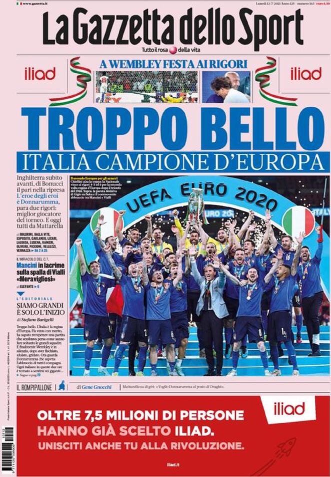 RASSEGNA STAMPA, Le prime pagine dei quotidiani Redazione 12 Luglio 2021 Ecco le prime pagine dei principali quotidiani sportivi in edicola questa mattina: