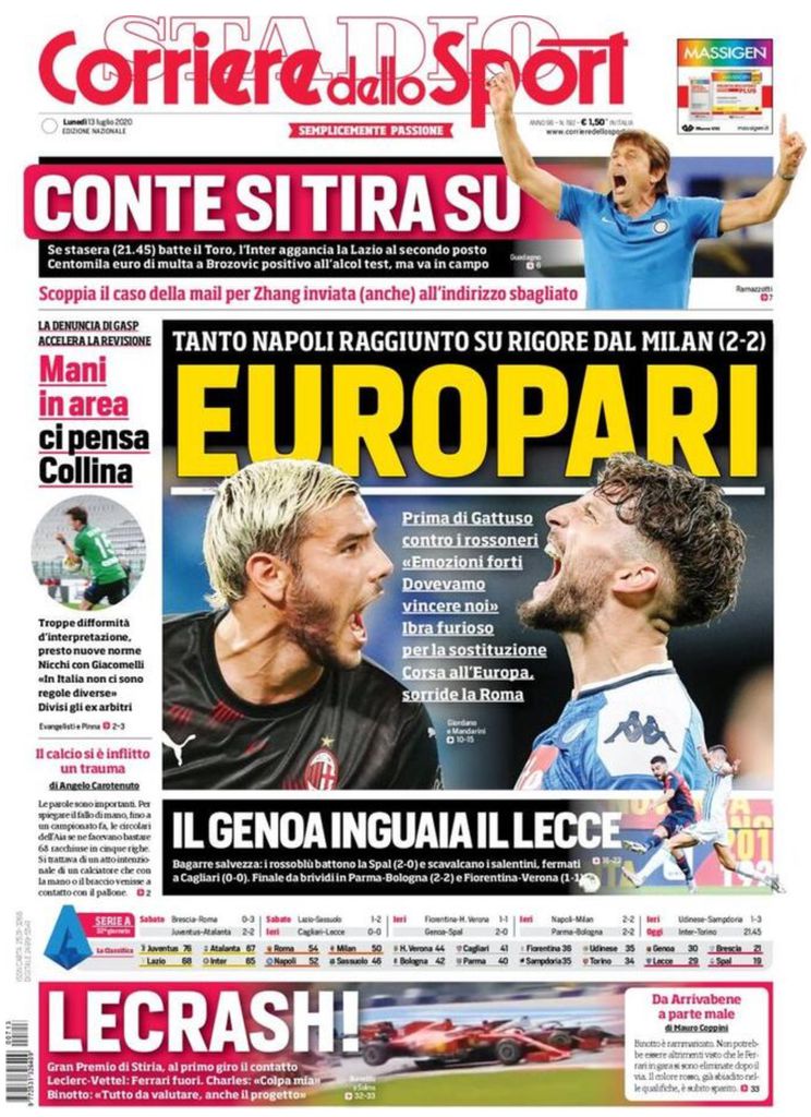 RASSEGNA STAMPA, Le prime pagine dei quotidiani sportivi di oggi Redazione 13 Luglio 2020 Ecco le prime pagine dei quotidiani sportivi di oggi: