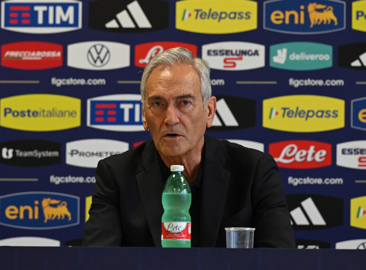 Gabriele Gravina in conferenza stampa (Photo by Claudio Villa/Getty Images for FIGC) via OneFootball