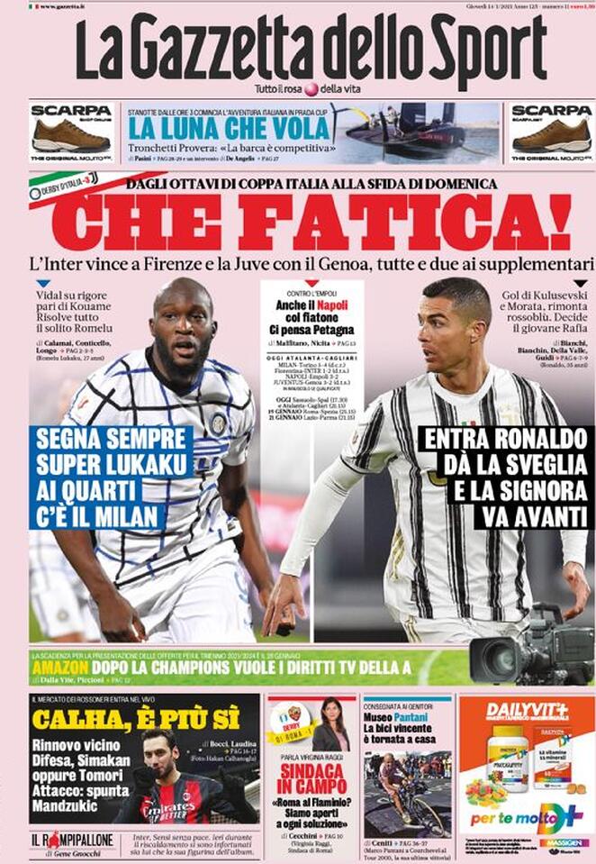 RASSEGNA STAMPA, Le prime pagine dei quotidiani di oggi Redazione 14 Gennaio 2021 Ecco le prime pagine dei principali quotidiani sportivi di oggi: