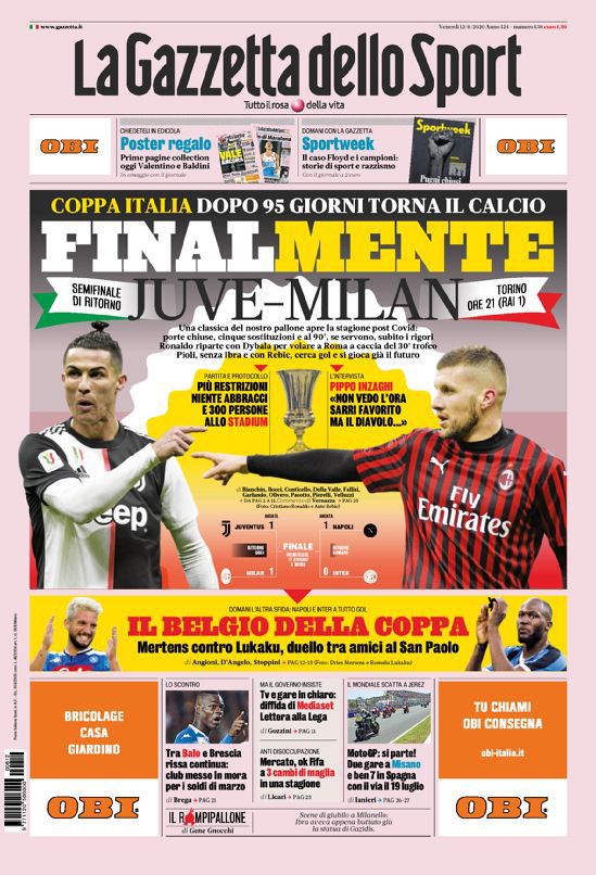 RASSEGNA STAMPA, Le prime pagine dei quotidiani sportivi Redazione 12 Giugno 2020 Queste le prime pagine dei quotidiani sportivi oggi in edicola