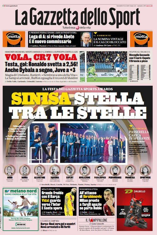 RASSEGNA STAMPA, Le prime pagine dei quotidiani sportivi Redazione 19 Dicembre 2019 Ecco le prime pagine dei maggiori quotidiani sportivi italiani, oggi in edicola: