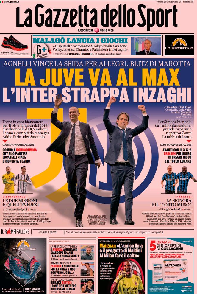 RASSEGNA STAMPA, Le prime pagine dei quotidiani sportivi Redazione 28 Maggio 2021 Ecco le prime pagine dei quotidiani sportivi nazionali in edicola quest’oggi: