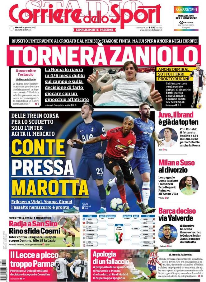 RASSEGNA STAMPA, Le prime pagine dei quotidiani sportivi di oggi Redazione 14 Gennaio 2020 Di seguito le prime pagine dei quotidiani di oggi martedì 14 gennaio 2020.
