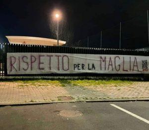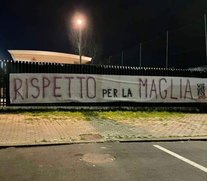 Spunta nei pressi del Franchi un duro striscione di protesta a firma Viesseux, storico gruppo di tifosi, che hanno espresso il loro dissenso con la scritta “rispetto per la maglia” esortando i calciatori a rispettare la maglia che indossano ogni domenica. Questa la foto scattata dalla nostra redazione: