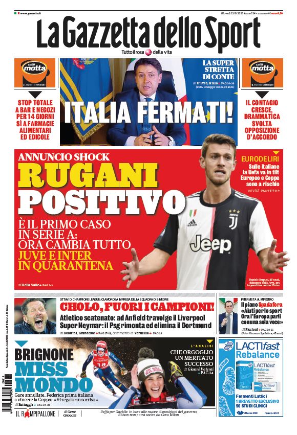 RASSEGNA STAMPA, Le prime pagine dei quotidiani sportivi Redazione 12 Marzo 2020 Queste le prime pagine dei quotidiani oggi in edicola