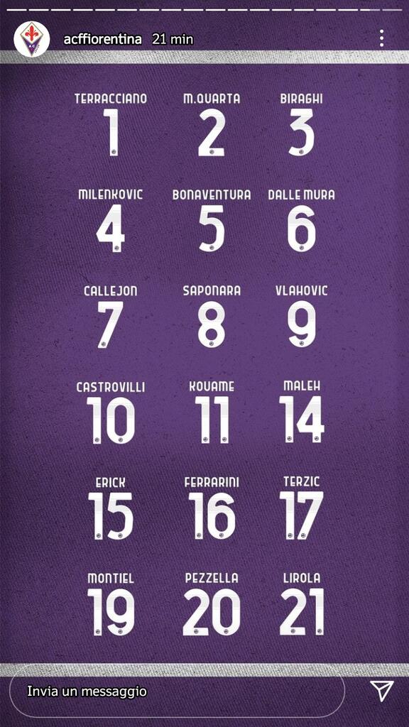 Resi ufficiali i numeri di maglia dei giocatori della Fiorentina. Ecco il comunicato: