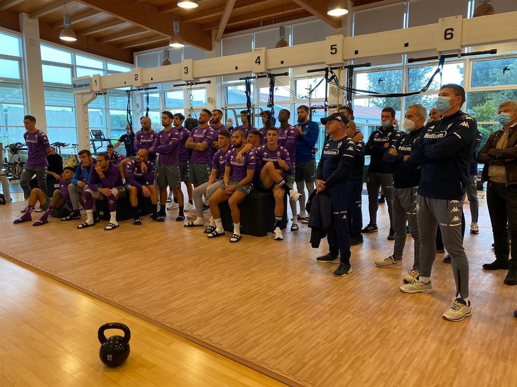 Il Presidente Commisso, nonostante l’impossibilità di essere fisicamente accanto alla squadra, ha voluto lo stesso, in diretta streaming, mostrare la propria vicinanza. Il Presidente per prima cosa si è voluto sincerare dello stato di salute di tutti. Ha poi ribadito che il gruppo, dopo le critiche ricevute nei giorni scorsi, ha ora l’opportunità di mostrare il proprio effettivo valore, quello di una buona squadra, più forte dell’anno scorso. Commisso ha sottolineato l’importanza del gruppo, del giocare di squadra, l’uno per l’altro, proprio quello che diceva ai suoi compagni quando era capitano della sua squadra. Ha chiesto ai calciatori più esperti di aiutare i più giovani a crescere e trovare uno spirito di squadra, evidenziando l’importanza di tutti, sia di coloro che partono titolari, sia coloro che iniziano dalla panchina. Il Presidente ha anche ricordato l’importanza di avere Mediacom sulla propria maglia, con oltre 15000 persone che tifano dall’America e che vorrebbe come anche la Fiorentina seguisse un percorso di successi e crescita costante come l’azienda americana fa ormai da 24 anni. Rocco ha ribadito come la Proprietà e tutta la Dirigenza siano a fianco della squadra ed è certo che lo sia anche tutta la Famiglia Viola ma tutti si aspettano, già da domani, il massimo impegno e compattezza per dimostrare il proprio attaccamento ai colori viola. Il Presidente ha chiosato dicendo al gruppo che domani insieme a sua moglie festeggeranno il loro quarantacinquesimo anniversario di matrimonio e si aspettano un bellissimo regalo dalla squadra. Ecco alcune immagini del momento: