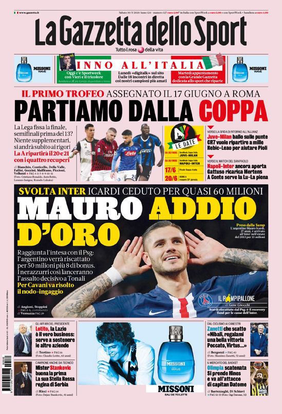 RASSEGNA STAMPA, Le prime pagine dei quotidiani sportivi di oggi Redazione 30 Maggio 2020 Queste le aperture dei quotidiani oggi sabato 30 maggio.