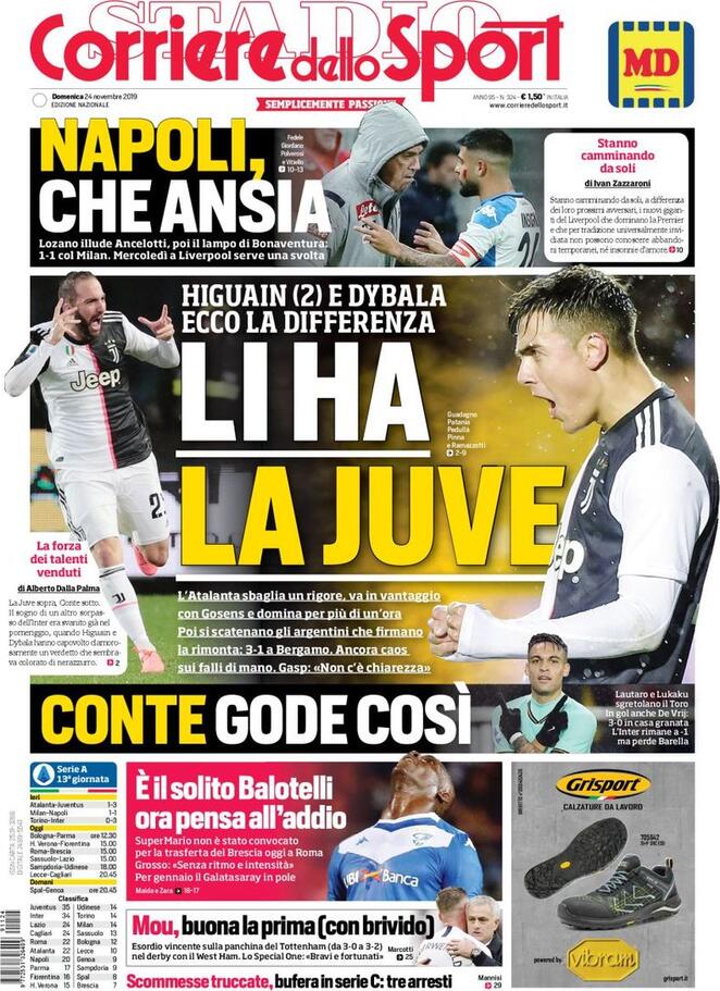 RASSEGNA STAMPA, Le prime pagine dei quotidiani sportivi di oggi Redazione 24 Novembre 2019 Queste le prime pagine dei giornali sportivi di oggi domenica 24 novembre.
