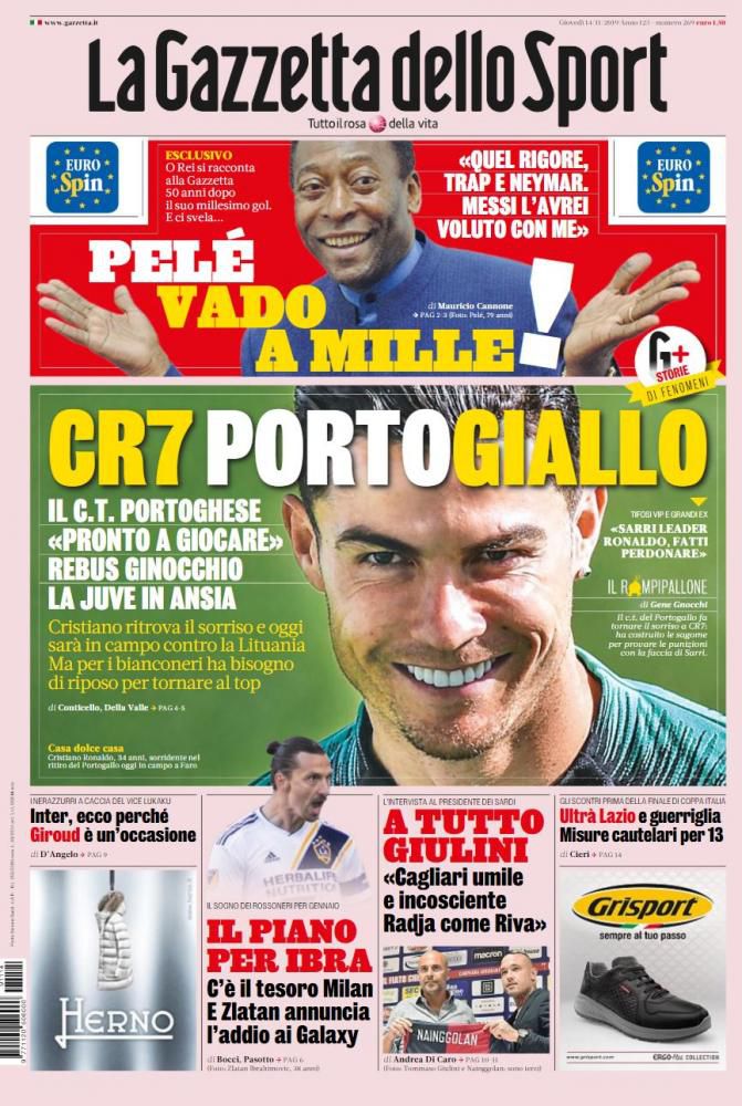 RASSEGNA STAMPA, Le prime pagine dei quotidiani sportivi Redazione 14 Novembre 2019 Ecco le prime pagine dei maggiori quotidiani sportivi italiani, oggi in edicola: