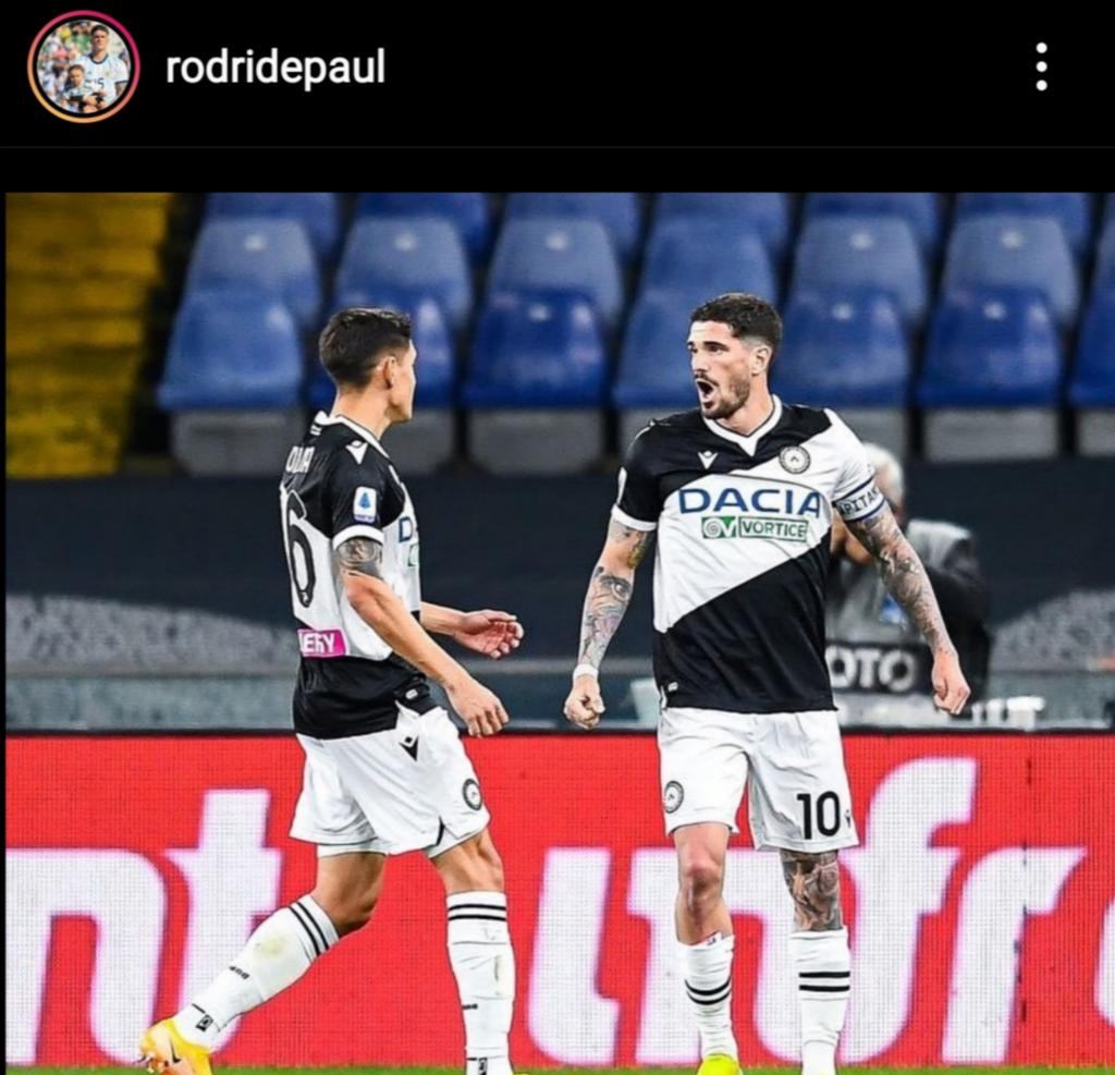 Un gol che vale un punto quello di Rodrigo De Paul contro il Genoa. Il centrocampista argentino è risultato decisivo dal dischetto nell’1-1 del Ferraris e nel day-after ha così commentato il pari con un post su Instagram: “Un altro risultato positivo per raggiungere il primo obiettivo. Continuiamo”.
