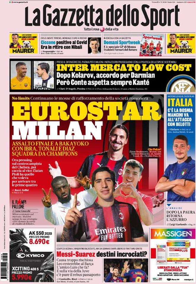RASSEGNA STAMPA, Le prime pagine dei quotidiani Redazione 4 Settembre 2020 Queste le prime pagine dei quotidiani sportivi: