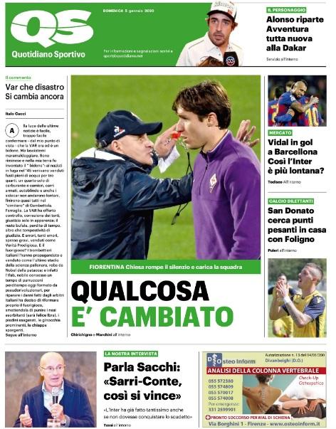 Titolo in prima pagina dell’edizione odierna di QS dedicato alle parole rilasciate ieri da Federico Chiesa. L’attaccante della Fiorentina ha parlato dell’approdo di Beppe Iachini sulla panchina viola e del momento della squadra toscana. Questo il titolo: “Qualcosa è cambiato”.