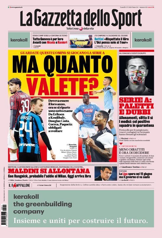 RASSEGNA STAMPA, Le prime pagine dei quotidiani di oggi Redazione 11 Maggio 2020 Queste le prime pagine dei quotidiani di oggi lunedì 11 maggio.