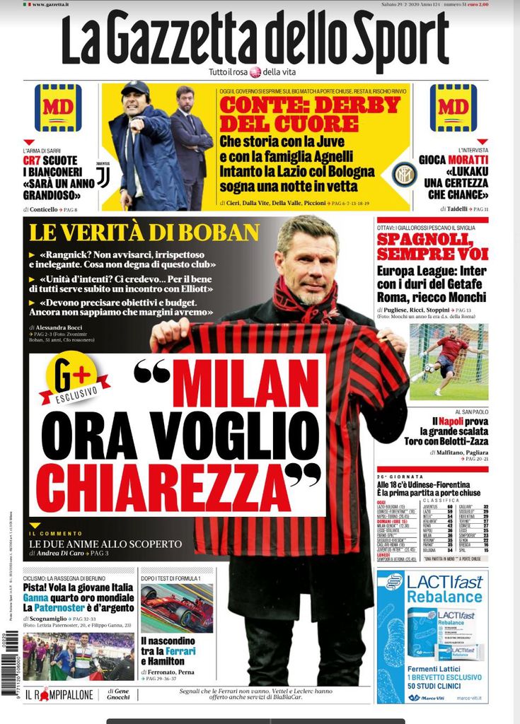 RASSEGNA STAMPA, Le prime pagine dei quotidiani sportivi Redazione 29 Febbraio 2020 Ecco le prime pagine di questa mattina: