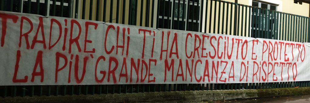 La cessione di Chiesa continua ad alimentare malumori nel tifo viola. È da poco comparso al Franchi un duro striscione, a firma 1926, contro Federico Chiesa, fresco di passaggio all’odiata Juventus. Foto a cura di Fiorentinauno.com