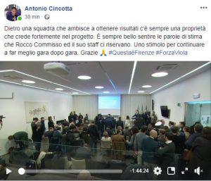 Queste le parole tramite i social di Antonio Cincotta, mister della Fiorentina Women’s che ha commentato la conferenza stampa di presentazione del nuovo centro sportivo viola: “Dietro una squadra che ambisce a ottenere risultati c’è sempre una proprietà che crede fortemente nel progetto. È sempre bello sentire le parole di stima che Rocco Commisso ed il suo staff ci riservano. Uno stimolo per continuare a far meglio gara dopo gara. Grazie”.