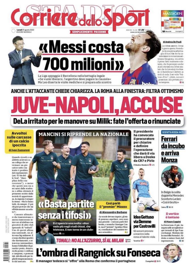 RASSEGNA STAMPA, Le prime pagine dei quotidiani sportivi di oggi Redazione 31 Agosto 2020 Ecco le prime pagine dei quotidiani sportivi di oggi: