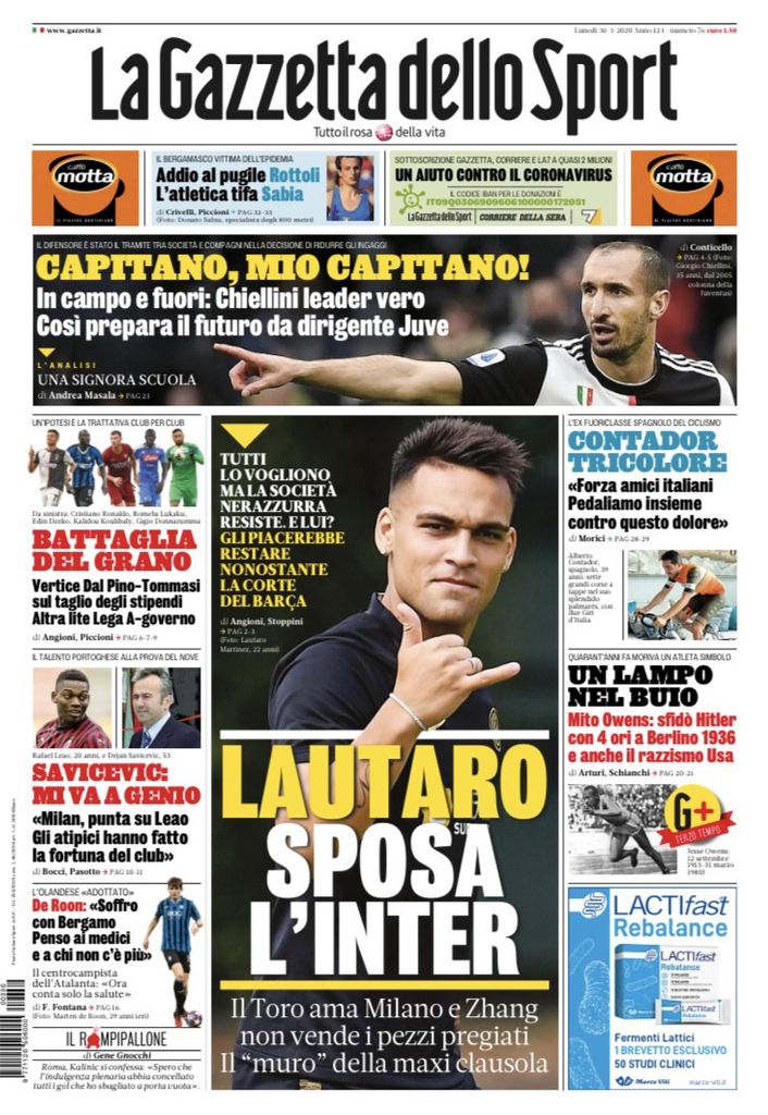 RASSEGNA STAMPA, Le prime mini pagine dei quotidiani sportivi Redazione 30 Marzo 2020 Ecco le prime pagine di questa mattina: