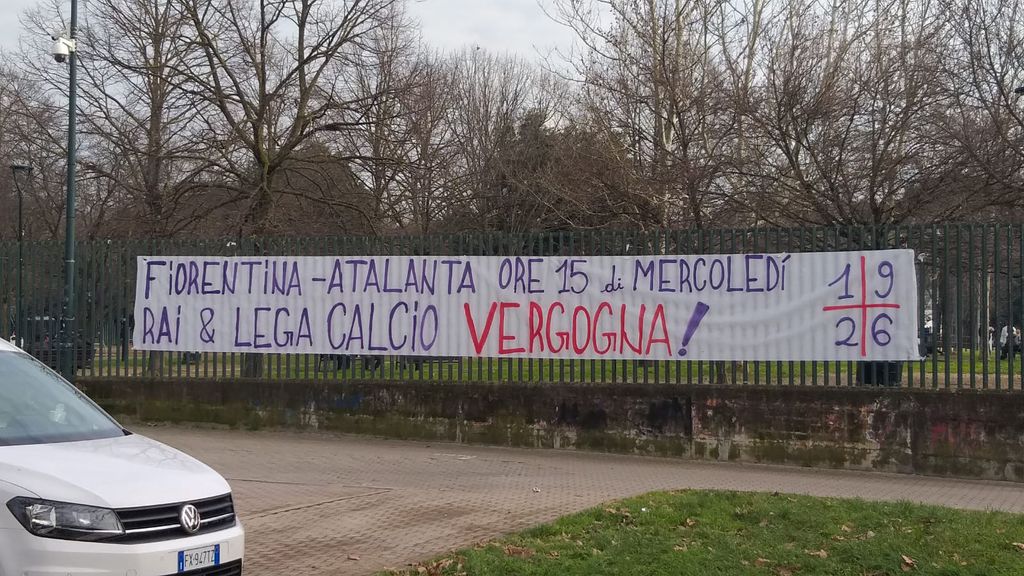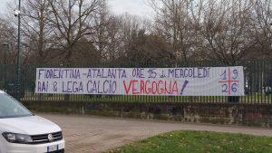 Fiorentina-Atalanta, l’orario non va giù ai tifosi che si fanno sentire con la Lega e la Rai con uno striscione nei pressi dello stadio: