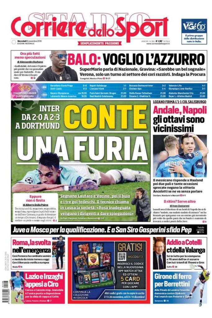 RASSEGNA STAMPA, Le prime pagine dei principali quotidiani sportivi Redazione 6 Novembre 2019 Queste le prime pagine dei principali quotidiani sportivi oggi in edicola