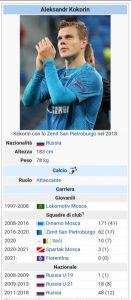La Fiorentina sta portando avanti una trattativa di mercato importantissima per procedere all’acquisto di Aleksandr Kokorin: attaccante russo oggi allo Spartak Mosca. Per quanto la negoziazione stia andando rapidamente a buon fine, Wikipedia lo considera già un giocatore della Fiorentina. Ecco riportate le immagini estrapolate dalla famosa piattaforma di consultazione.