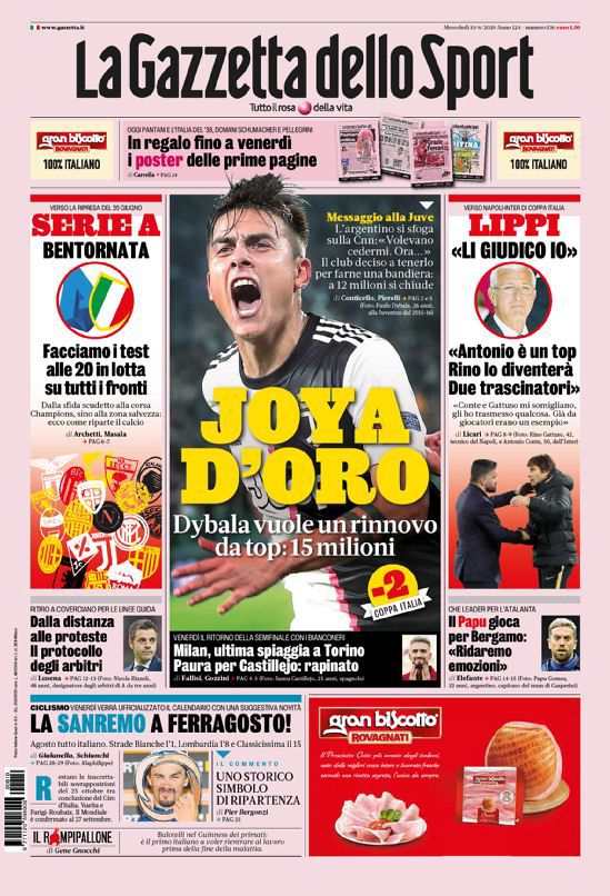 Queste le prime pagine dei quotidiani sportivi di oggi.