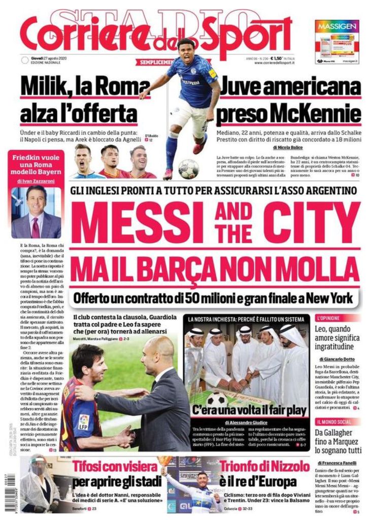 RASSEGNA STAMPA, Le prime pagine dei quotidiani sportivi di oggi Redazione 27 Agosto 2020 Ecco le prime pagine dei quotidiani sportivi di oggi: