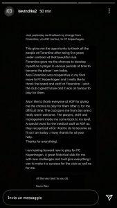 L’ex ormai terzino della Fiorentina ha ringraziato sui social la viola dell’opportunità che gli ha dato di far parte del club e di averlo fatto crescere come giocatore. “Auguro al club un grande futuro. Un onore averci giocato” ha terminato così il suo messaggio social.