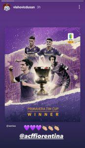 Ecco la storia pubblicata da Dusan Vlahovic sul suo profilo Instagram per celebrare la vittoria della Coppa Italia da parte della Primavera: