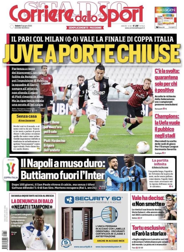 RASSEGNA STAMPA, Le prime pagine dei quotidiani sportivi di oggi Redazione 13 Giugno 2020 Ecco le prime pagine dei quotidiani sportivi di oggi: